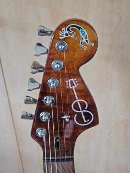 I always wanted to find out what a Strat style body sounded like with P-90's and a bonus single coil sized humbucker in the middle position. This is the result. Modest range P-90's (7.72K N, 8.54K B) in the neck and bridge, and a Bill Lawrence L 45S in the middle makes this a different sounding strat style than anything else I have. Standard wiring with a bridge tone control mod. I also changed out the nut for a Tusq nut. I love P-90's and the combo of these with the middle humbucker gives very interesting and useable 2 and 4 settings. I am still getting to know this one, but have been pleasently surprised with the results. Something different in a guitar that feels right at home in my hands.